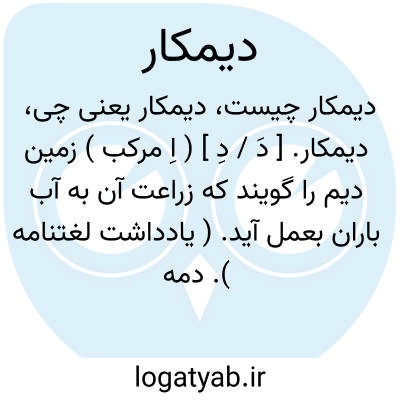 دیمکار. [ دَ / دِ ] ( اِ مرکب ) زمین دیم را گویند که زراعت آن به آب باران بعمل آید. ( یادداشت لغتنامه ). دمه جار. ( در تداول مردم قزوین ). || ( نف مرکب ) زراعت کننده. ( یادداشت لغتنامه ). کشاورز کشت دیمی یعنی کشتی که از باران آب خورد.
