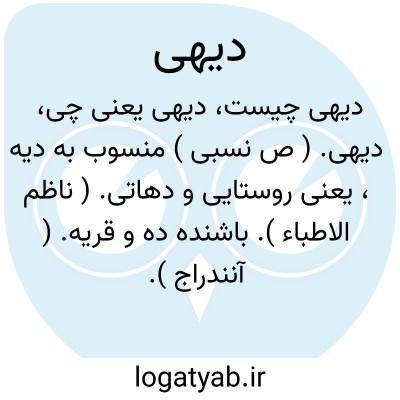 دیهی. ( ص نسبی ) منسوب به دیه، یعنی روستایی و دهاتی. ( ناظم الاطباء ). باشنده ده و قریه. ( آنندراج ).