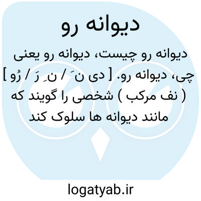 دیوانه رو. [ دی ن َ / ن ِ رَ / رُو ] ( نف مرکب ) شخصی را گویند که مانند دیوانه ها سلوک کند و براه رود. ( برهان ) ( از آنندراج ). این ترکیب در ناظم الاطباء ( دیوانه دو ) آمده و ظاهراً سهو است. ( یادداشت لغتنامه ).