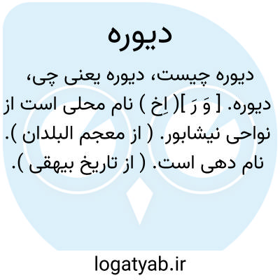 دیوره. [ وَ رَ ]( اِخ ) نام محلی است از نواحی نیشابور. ( از معجم البلدان ). نام دهی است. ( از تاریخ بیهقی ). از نواحی نیشابور است و ابوعلی احمدبن حمدویةبن مسلم بیهقی بدانجا منسوب است و از علمائی است که در آنجا رحل اقامت افکنده تا از اسحاق بن راهویه طلب حدیث نماید. وی در سال 289 هَ. ق. وفات کرده است. ( از معجم البلدان ).