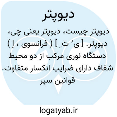 {diopter} [فیزیک- اپتیک] 1. سطحی که دو محیط نوری مختلف را از هم جدا می کند 2. واحد توان هم گرایی یا واگرایی در اجزا و سامانه های نوری، برابر با عکس فاصلۀ کانونی برحسب متر