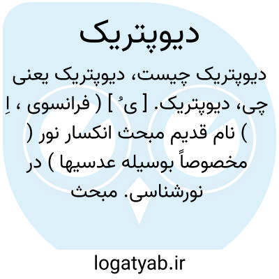 دیوپتریک. [ ی ُ ] ( فرانسوی، اِ ) نام قدیم مبحث انکسار نور ( مخصوصاً بوسیله عدسیها ) در نورشناسی. مبحث انعکاس را کاتوپتریک ( به فرانسه ) میخواندند.کتاب دیوپتریک ( 1637م. ) دکارت درباب ساختن عدسی برای دوربینها شهرت بسیار یافت، ولی چون دکارت ترکیب واقعی نور سفید را نمیدانست نظریه ای که در آن درباب انکسار نور آورده است خطاست. ( دایرة المعارف فارسی ).