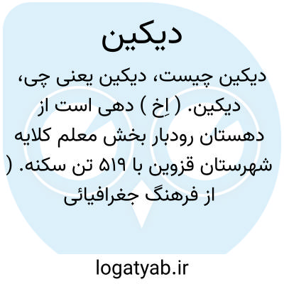 دیکین. ( اِخ ) دهی است از دهستان رودبار بخش معلم کلایه شهرستان قزوین با 519 تن سکنه. ( از فرهنگ جغرافیائی ایران ج 1 ).