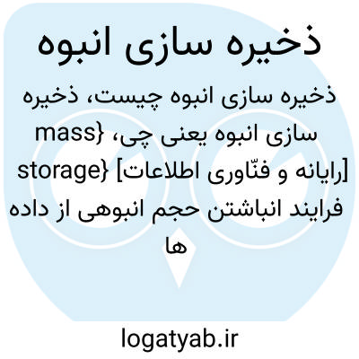 {mass storage} [رایانه و فنّاوری اطلاعات] فرایند انباشتن حجم انبوهی از داده ها و اطلاعات در حافظه یا هر ذخیره ساز دیگر