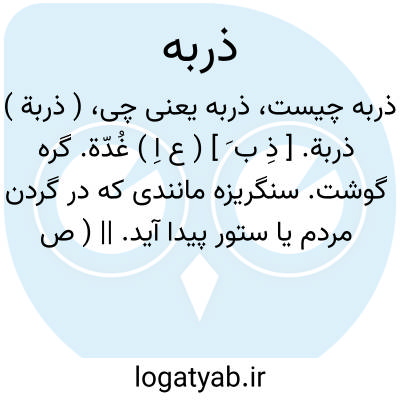 ( ذربة ) ذربة. [ ذِ ب َ ] ( ع اِ ) غُدّة. گره گوشت. سنگریزه مانندی که در گردن مردم یا ستور پیدا آید. || ( ص ) زن بدزبان. زن زبان دراز. بذیةاللسان و خیانتکار.( منتهی الارب ). بلندآواز. ( مهذب الاسماء ). ج، ذَرِب.