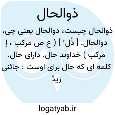 ذوالحال. [ ذُل ْ ] ( ع ص مرکب، اِ مرکب ) خداوند حال. دارای حال. کلمه ای که حال برای اوست: جائنی زیدٌ راکباً، راکباً حال است زید را و زید ذوالحال باشد.