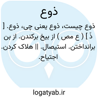 ذوع. [ ذَ ] ( ع مص ) از بیخ برکندن. از بن برانداختن. استیصال. || هلاک کردن. اجتیاح.
