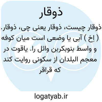 ۱ - آبی یا موضعی است میان کوفه و واسط متعلق به بنوبکر بن وائل ۲ - یوم ذوقار ( ذی قار ) جنگی است که میان قبیله بنی شیبان و فرستادگان خسرو پرویز در گرفته است ( سال ۴٠از ولادت رسول (ص ) و سبب آن کشتن عدی بن زید عبادی بامر نعمان بن منذر لخمی بود.بنی شیبان بر فرستادگان خسرو غالب آمدند.
