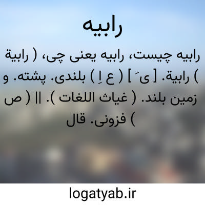 ( رابیة ) رابیة. [ ی َ ] ( ع اِ ) بلندی. پشته. و زمین بلند. ( غیاث اللغات ). || ( ص ) فزونی. قال اﷲ تعالی: فاخدهم اخذة رابیة ( قرآن 10/69 )؛ ای زایدة شدیدة. ( آنندراج ) ( منتهی الارب ).