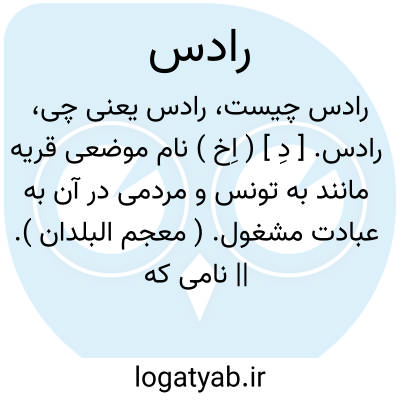 رادس. [ دِ ] ( اِخ ) نام موضعی قریه مانند به تونس و مردمی در آن به عبادت مشغول. ( معجم البلدان ). || نامی که به آن قسمت از مدیترانه که تونس در ساحل آن قرار دارد داده اند و بدین جهت بندر آن بندر رادس نامیده میشود. ( معجم البلدان ). و نیز رجوع به قاموس الاعلام ترکی شود.