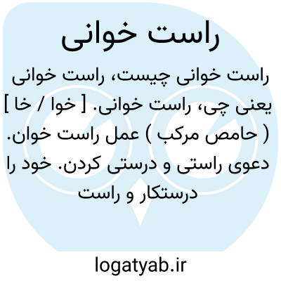 راست خوانی. [ خوا / خا ] ( حامص مرکب ) عمل راست خوان. دعوی راستی و درستی کردن. خود را درستکار و راست کردار معرفی کردن: