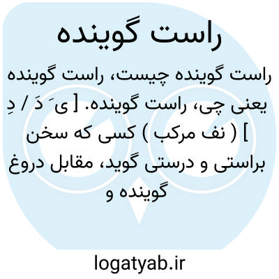 راست گوینده. [ ی َ دَ / دِ ] ( نف مرکب ) کسی که سخن براستی و درستی گوید، مقابل دروغ گوینده و ناراست گوینده: