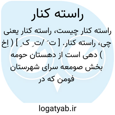 راسته کنار. [ ت َ /ت ِ ک ِ ] ( اِخ ) دهی است از دهستان حومه بخش صومعه سرای شهرستان فومن که در 6500 گزی شمال صومعه سرای واقعاست. محلی است جلگه یی، معتدل، مرطوب، و سکنه آن 882 تن میباشد. آب آن از رودخانه ماسوله و چاههای آرتزین تأمین میشود. محصول عمده آن: برنج، ابریشم، توتون و نیشکر و شغل اهالی زراعت و مکاری است. راه مالرو دارد. و از طریق کسما و جیر گوراب راه فرعی اتومبیل رو دارد. این ده دارای دبستان است و اخیراً چهار چاه آرتزین در آن احداث شده و این عمل بر آبادی و اهمیت آن افزوده است. ( از فرهنگ جغرافیایی ایران ج 2 ).