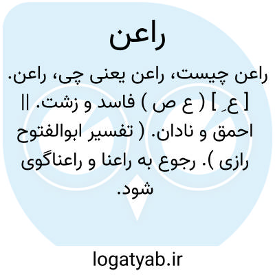 راعن. [ ع ِ ] ( ع ص ) فاسد و زشت. || احمق و نادان. ( تفسیر ابوالفتوح رازی ). رجوع به راعنا و راعناگوی شود.