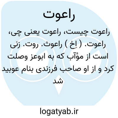 راعوت. ( اِخ ) راعوث. روت. زنی است از مؤآب که به ابوعز وصلت کرد و از او صاحب فرزندی بنام عوبید شد که جد داود باشد. ( از اعلام المنجد ). و رجوع به کتاب مقدس شود.