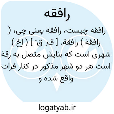 ( رافقة ) رافقة. [ ف ِ ق َ ] ( اِخ ) شهری است که بنایش متصل به رقة است هر دو شهر مذکور در کنار فرات واقع شده و میانشان سیصد ذراع فاصله است. شهر رافقة دو سور داردو میان این دو فصیلی حایل شده و در عین حال هم مربوط به هم دیگر وهم مربوط به رقه هستند و این آخری در ایام تاتارها خراب شده است. و از آن زمان تاکنون رافقة را «رقة» نامند. ( از معجم البلدان ج 4 و انساب سمعانی ). صاحب مجمل التواریخ بنای آن را به منصور نسبت داده است. رجوع به مجمل التواریخ والقصص ص 332 شود. وسامی گوید: قصبه ای بود در روبروی شهر قدیمی رقة و در محل رقه کنونی، که منصور خلیفه عباسی آن را بسال 155 هَ. ق. بنا کرده است. این قصبه بعدها وسعت پیداکرده و بمرور زمان با ویرانه شدن رقة، بازار و صادرات و واردات آن به رافقة منتقل گردیده و از اینروی نام «رقة» بدین قصبه اطلاق گشته و نام «رافقة» متروک شده است. ( از قاموس الاعلام ترکی ج 3 ). و رجوع به الوزراء و الکتاب ص 210 و لغت «رقة» در همین لغت نامه شود.