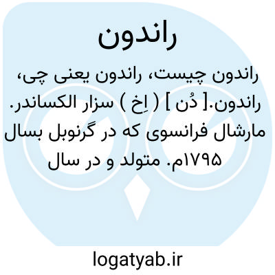 راندون.[ دُن ] ( اِخ ) سزار الکساندر. مارشال فرانسوی که در گرنوبل بسال 1795م. متولد و در سال 1871م. درگذشت. او در رام کردن و تسخیر قبیله قابیلی الجزایر شرکت کرد و در سال 1851 بمقام وزارت جنگ فرانسه رسید.
