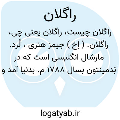 راگلان. ( اِخ ) جیمز هنری، لُرد. مارشال انگلیسی است که در بَدمینتون بسال 1788 م. بدنیا آمد و فرمانده سپاه انگلیس در جنگ کریمه بود. او در سال 1855 بدرود زندگی گفت.