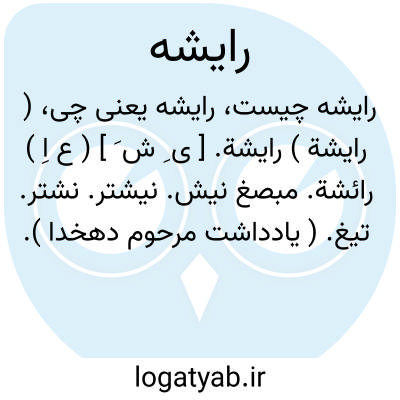 ( رایشة ) رایشة. [ ی ِ ش َ ] ( ع اِ ) رائشة. مبصغ نیش. نیشتر. نشتر. تیغ. ( یادداشت مرحوم دهخدا ).