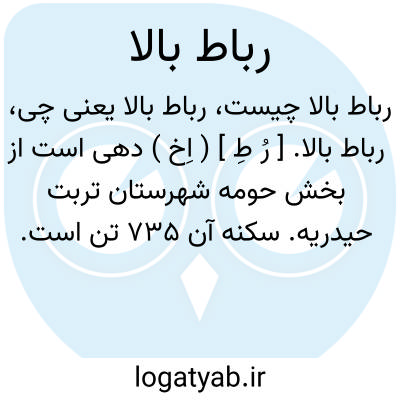 رباط بالا. [ رُ طِ ] ( اِخ ) دهی است از بخش حومه شهرستان تربت حیدریه. سکنه آن 735 تن است. آب این ده از قنات و محصول عمده آن غلات و پنبه است. ( از فرهنگ جغرافیایی ایران ج 9 ).
