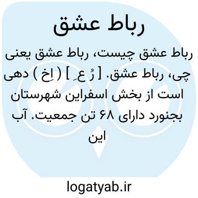 رباط عشق. [ رُ ع ِ ] ( اِخ ) دهی است از بخش اسفراین شهرستان بجنورد دارای 68 تن جمعیت. آب این ده از قنات تأمین میشود و فرآورده عمده آن غلات است. ( از فرهنگ جغرافیایی ایران ج 9 ). و رجوع به سفرنامه مازندران و استرآباد رابینو ص 201 شود.