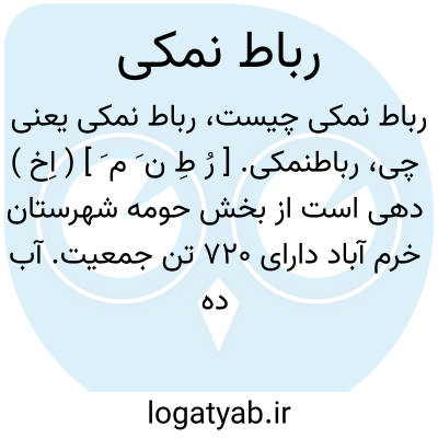 رباطنمکی. [ رُ طِ ن َ م َ ] ( اِخ ) دهی است از بخش حومه شهرستان خرم آباد دارای 720 تن جمعیت. آب ده ازرودخانه خرم آباد تأمین میشود و فرآورده عمده آن غلات و لبنیات، و صنایع دستی زنان بافتن فرش و سیاه چادر است. این ده دارای معدن نمک میباشد و ساکنان آن ازطایفه حسنوندند و برای چرانیدن چهارپایان و ستور ییلاق و قشلاق میکنند. ( از فرهنگ جغرافیایی ایران ج 6 ).