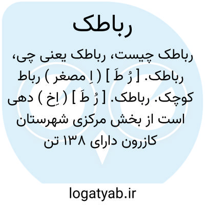 رباطک. [ رُ طَ ] ( اِخ ) دهی است از بخش مرکزی شهرستان کازرون دارای 138 تن جمعیت. محصول عمده آن غلات است. ( از فرهنگ جغرافیایی ایران ج 7 ).