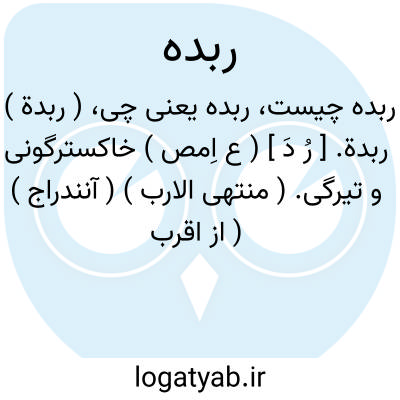( ربدة ) ربدة. [ رُ دَ ] ( ع اِمص ) خاکسترگونی و تیرگی. ( منتهی الارب ) ( آنندراج ) ( از اقرب الموارد ) ( ناظم الاطباء ). ج، رُبَد. ( اقرب الموارد ).