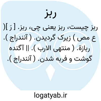 ربز. [ رَ ]( ع مص ) زیرک گردیدن. ( آنندراج ). ربازة. ( منتهی الارب ). || آگنده گوشت و فربه شدن. ( آنندراج ).
