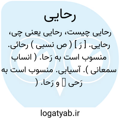 رحایی. [ رَ ] ( ص نسبی ) رحائی. منسوب است به رَحا. ( انساب سمعانی ). آسیابی. منسوب است به رَحی ̍ و رَحا. ( یادداشت مؤلف ):