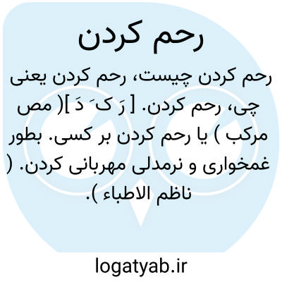 رحم کردن. [ رَ ک َ دَ ]( مص مرکب ) یا رحم کردن بر کسی. بطور غمخواری و نرمدلی مهربانی کردن. ( ناظم الاطباء ). رحمت آوردن. رحمت نمودن. رحم آوردن. عطوفت و نرمدلی نمودن:
