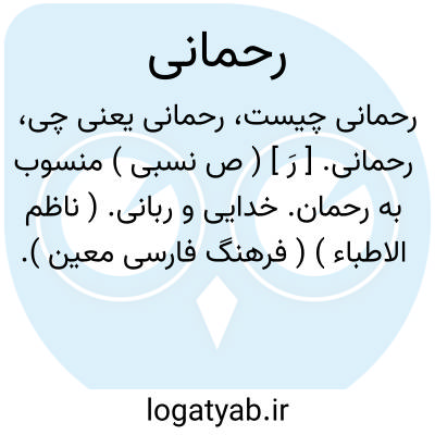 رحمانی. [ رَ ] ( ص نسبی ) منسوب به رحمان. خدایی و ربانی. ( ناظم الاطباء ) ( فرهنگ فارسی معین ).