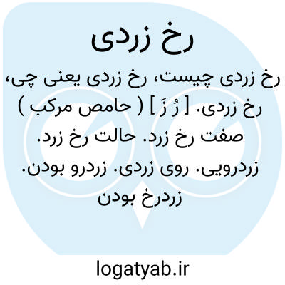 رخ زردی. [ رُ زَ ] ( حامص مرکب ) صفت رخ زرد. حالت رخ زرد. زردرویی. روی زردی. زردرو بودن. زردرخ بودن:
