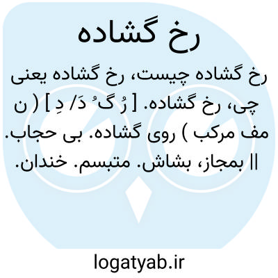 رخ گشاده. [ رُ گ ُ دَ/ دِ ] ( ن مف مرکب ) روی گشاده. بی حجاب. || بمجاز، بشاش. متبسم. خندان. مقابل عبوس: