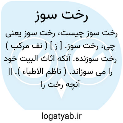 رخت سوز. [ رَ ] ( نف مرکب ) رخت سوزنده. آنکه اثاث البیت خود را می سوزاند. ( ناظم الاطباء ). || آنچه رخت را بسوزاند. سوزنده جامه و مان: