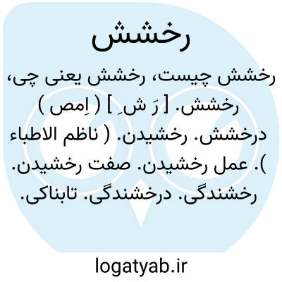 رخشش. [ رَ ش ِ ] ( اِمص ) درخشش. رخشیدن. ( ناظم الاطباء ). عمل رخشیدن. صفت رخشیدن. رخشندگی. درخشندگی. تابناکی. تابندگی. تابش: