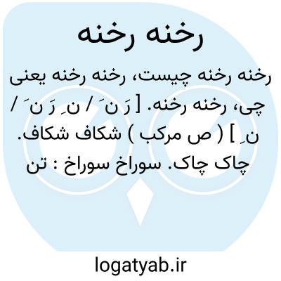 رخنه رخنه. [ رَ ن َ / ن ِ رَ ن َ / ن ِ ] ( ص مرکب ) شکاف شکاف. چاک چاک. سوراخ سوراخ: