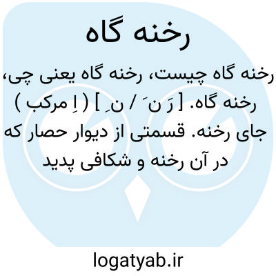 رخنه گاه. [ رَ ن َ / ن ِ ] ( اِ مرکب ) جای رخنه. قسمتی از دیوار حصار که در آن رخنه و شکافی پدید آید. ( یادداشت مؤلف ):