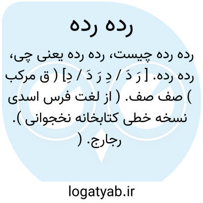رده رده. [ رَ دَ / دِ رَ دَ / دِ] ( ق مرکب ) صف صف. ( از لغت فرس اسدی نسخه خطی کتابخانه نخجوانی ). رجارج. ( یادداشت مؤلف ):