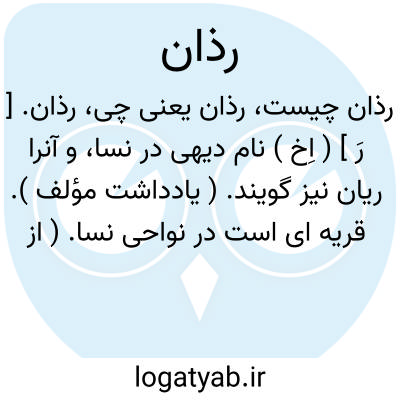 رذان. [ رَ ] ( اِخ ) نام دیهی در نسا، و آنرا ریان نیز گویند. ( یادداشت مؤلف ). قریه ای است در نواحی نسا. ( از معجم البلدان ). دهی است به نیشابور. ( منتهی الارب ). رجوع به ریان شود.