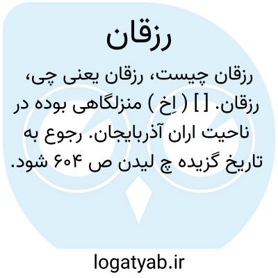 رزقان. [ ] ( اِخ ) منزلگاهی بوده در ناحیت اران آذربایجان. رجوع به تاریخ گزیده چ لیدن ص 604 شود.
