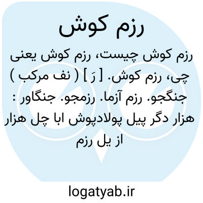 رزم کوش. [ رَ ] ( نف مرکب ) جنگجو. رزم آزما. رزمجو. جنگاور: هزار دگر پیل پولادپوش ابا چل هزار از یل رزم کوش.اسدی.من اینجا و او رزم کوش آمده ست همانا که خونش به جوش آمده ست.اسدی.ندانی که چون او شود رزم کوش زمانه به زنهار گیرد خروش.اسدی.