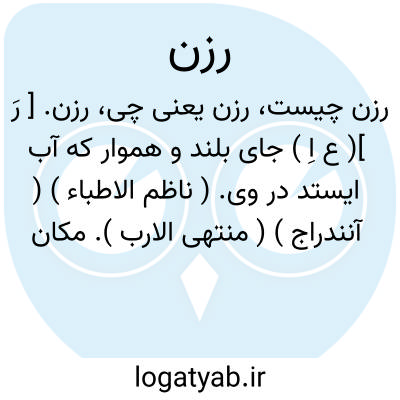 رزن. [ رِ ] ( ع اِ ) کرانه. ( ناظم الاطباء ) ( آنندراج ) ( منتهی الارب ). ناحیه. ( از اقرب الموارد ).