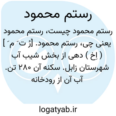 رستم محمود. [رُ ت َ م َ ] ( اِخ ) دهی از بخش شیب آب شهرستان زابل. سکنه آن 280 تن. آب آن از رودخانه هیرمند. محصولات آنجا غلات و لبنیات. ( از فرهنگ جغرافیایی ایران ج 8 ).