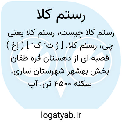 رستم کلا. [ رُ ت َ ک َ ] ( اِخ ) قصبه ای از دهستان قره طقان بخش بهشهر شهرستان ساری. سکنه 4500 تن. آب آن از قنات. زیارتگاه از آثار قدیم دارد. محصولات آنجا برنج و غلات و پنبه و صیفی و ابریشم و مرکبات. ایستگاه راه آهن بنام رستم کلا در دوهزارگزی این قصبه واقعست. ( از فرهنگ جغرافیایی ایران ج 2 ).