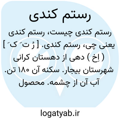 رستم کندی. [ رُ ت َ ک َ ] ( اِخ ) دهی از دهستان کرانی شهرستان بیجار. سکنه آن 180 تن. آب آن از چشمه. محصول آن غلات و لبنیات. صنایع دستی زنان قالیچه و جاجیم بافی. ( از فرهنگ جغرافیایی ایران ج 5 ).