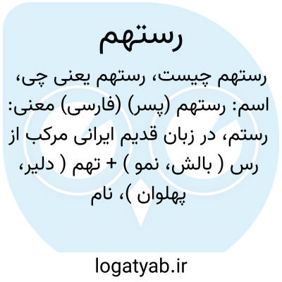 رستهم. [ رُ ت َ ] ( اِخ ) رستم،پهلوان مشهور. ( ناظم الاطباء ). رستم زال را گویند. ( برهان ) ( از شعوری ج 2 ورق 24 ). رستم بود. ( لغت فرس اسدی ). رستم زال بود. ( فرهنگ اوبهی ). نام بزرگترین پهلوان قدیم شاهنامه است. ( از فرهنگ نظام ):