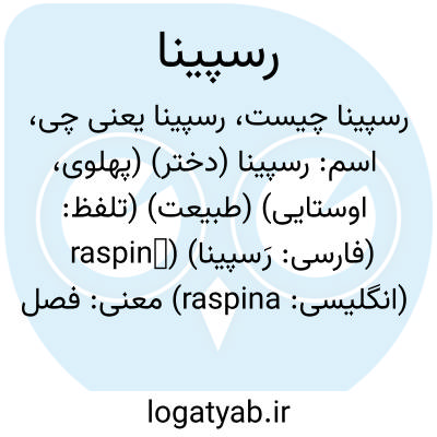 اسم: رسپینا (دختر) (پهلوی، اوستایی) (طبیعت) (تلفظ: raspinā) (فارسی: رَسپينا) (انگلیسی: raspina)