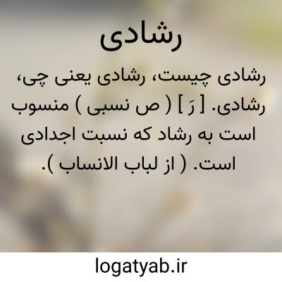 رشادی. [ رَ ] ( ص نسبی ) منسوب است به رشاد که نسبت اجدادی است. ( از لباب الانساب ).