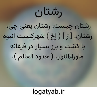 رشتان. [ رَ ] ( اِخ ) شهرکیست انبوه با کشت و برز بسیار در فرغانه ماوراءالنهر. ( حدود العالم ).